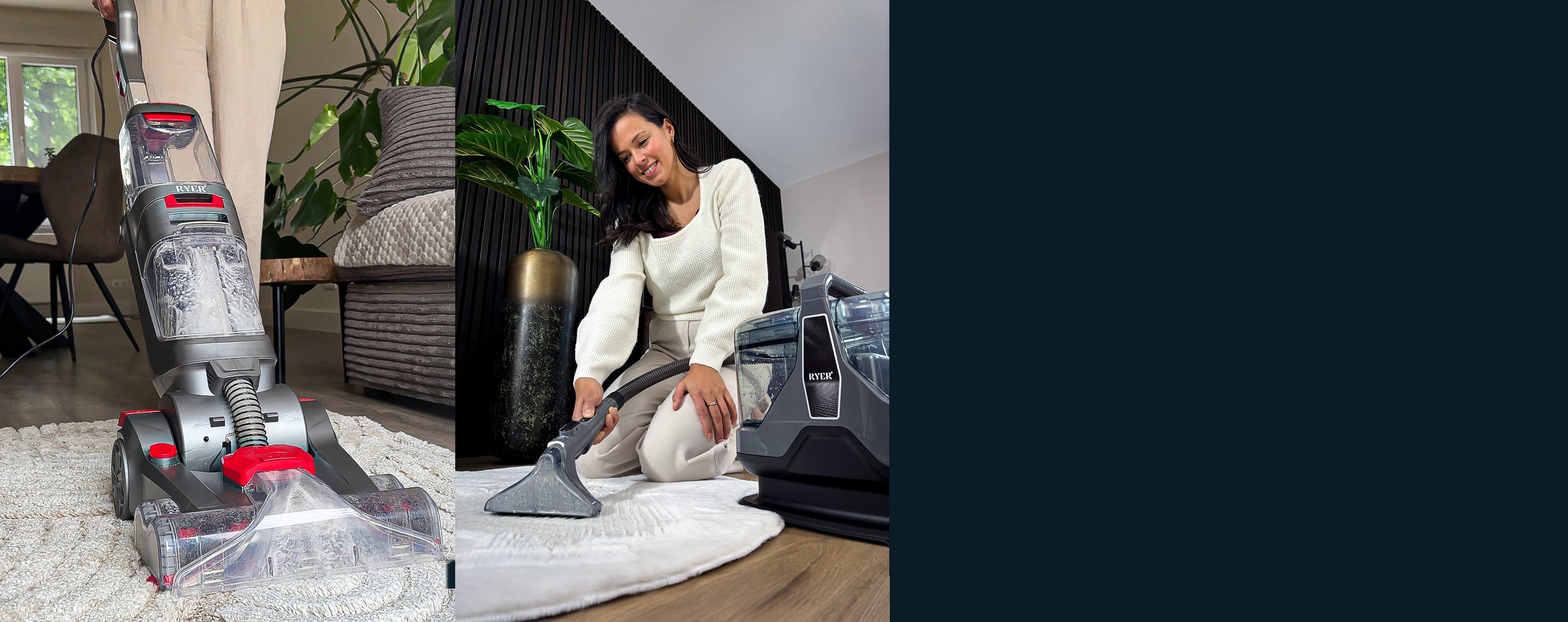 Entdecke die Power von Ryer und erlebe einen neuen Standard in der Teppichreinigung. Mit unserer vielseitigen Reihe an leistungsstarken Teppichreinigern entfernst du mühelos hartnäckigen Schmutz und Flecken aus deinem Teppich. Wähle den Ryer, der am besten zu dir passt, und genieße eine frische, saubere Umgebung!